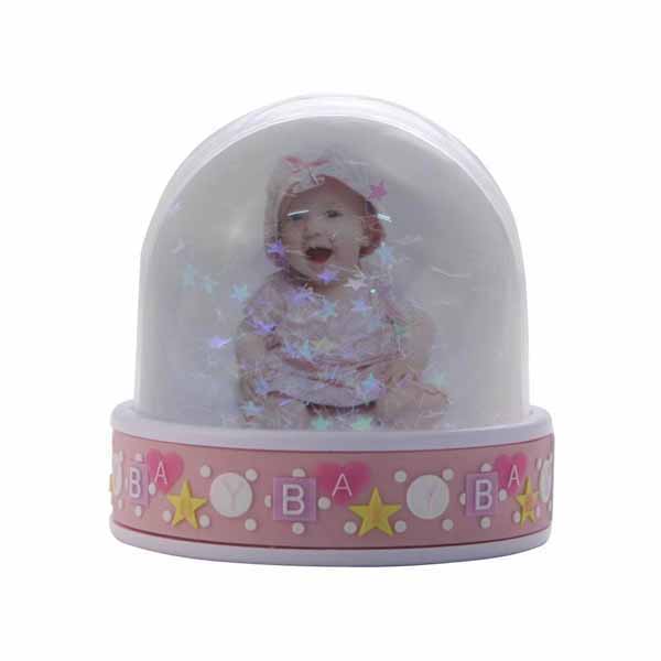 Foto snježna kugla 95 x 92 mm – baby pink sa srebrnim/ružičastim šljokicama i zvjezdicama