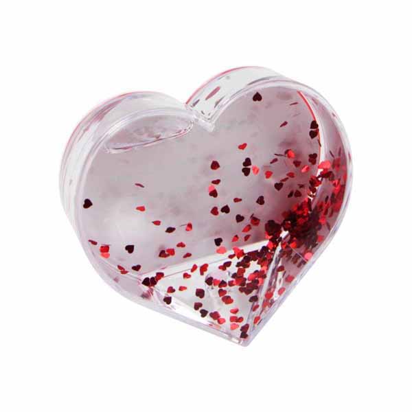 Snježna kugla u obliku srca s crvenim šljokicama 97 × 91 mm